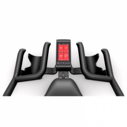 Every user finds its ideal training position on the new IC6. Either very sporty or upright posture, thanks to versatile adjusting possibilities of saddle and handlebar, it's no problem. The ergonomically shaped saddle has a rather sporty design but is still comfortable. The standard saddle holder allos to exchange the saddle against another model. The multi-position handlebar offers versatile grasp possibilities and is equipped with two cup holders. The display is well visible built-in in the front.